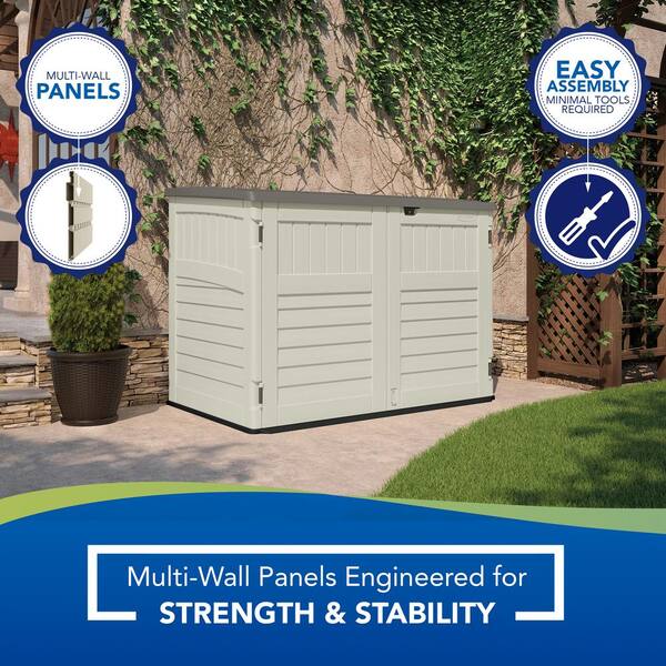 THE STOW-AWAY Horizontal Shed is perfect for storing garbage cans and recycling bins as well as lawn and garden supplies tools smaller bicycles patio cushions and more. How to Assemble and Disassemble a Suncast Door Latch. BMS8100 - 547 cu.